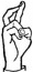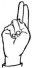 На ћирилици написано РАДНА КОВАЧЕВИЋ састоји се из 14 слова [?]. Исписано ћириличном једноручном азбуком за глувонеме: